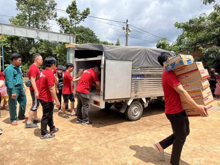 Tại đây, những chiến binh đỏ nhà VietMoney đã có cơ hội tiếp xúc với hơn 100 em thiếu nhi đồng bào đang sinh sống tại các khu vực núi cao có hoàn cảnh đặc biệt khó khăn. Các em thiếu thốn rất nhiều từ thực phẩm, quần áo đến các đồ dùng học tập, công cụ để đến trường. Phối hợp cùng UBND huyện Bù Gia Mập, Ban Giám đốc, BCH Công Đoàn và thành viên của VietMoney đã tận tay trao đến các em những nhu yếu phẩm thiết yếu, những phần quà trung thu, quần áo – đồng phục đến trường, sách truyện và đồ chơi trẻ em.