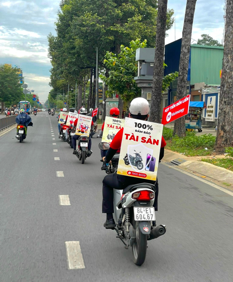 Hoà trong không khí náo nhiệt của những ngày gần Tết, các chiến binh VietMoney đã phủ khắp các con đường bằng màu áo đỏ rực cùng với những tấm bảng giới thiệu chương trình tràn đầy sắc vàng mùa Xuân.
