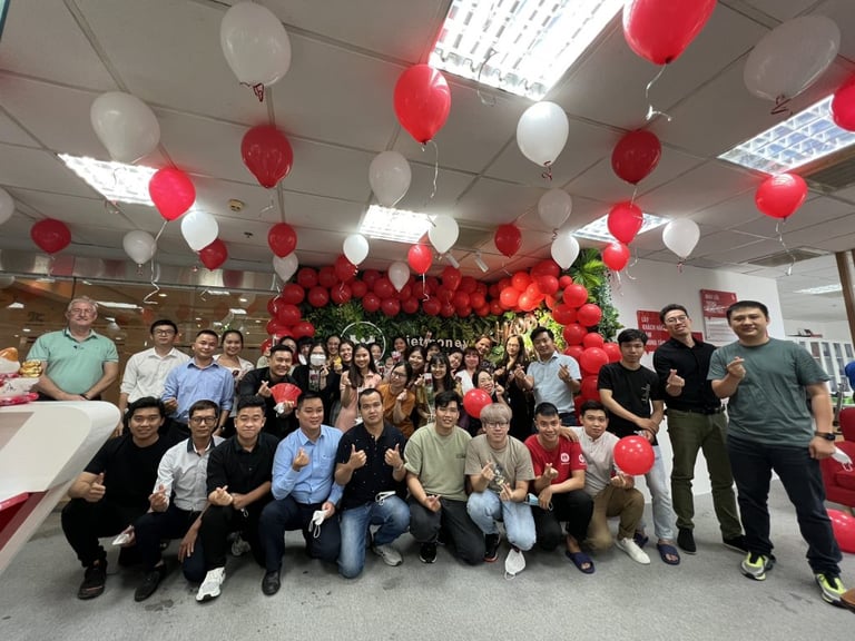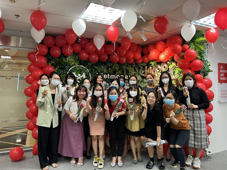 Nhằm tôn vinh, khẳng định những giá trị truyền thống tốt đẹp của người phụ nữ Việt Nam nói chung, nữ CBNV VietMoney nói riêng, chiều ngày 8/3, các bạn nam trong công ty đã tổ chức một buổi tiệc nho nhỏ tràn ngập hoa và bóng bay với sự tham dự của đông đảo CBNV trong toàn công ty.