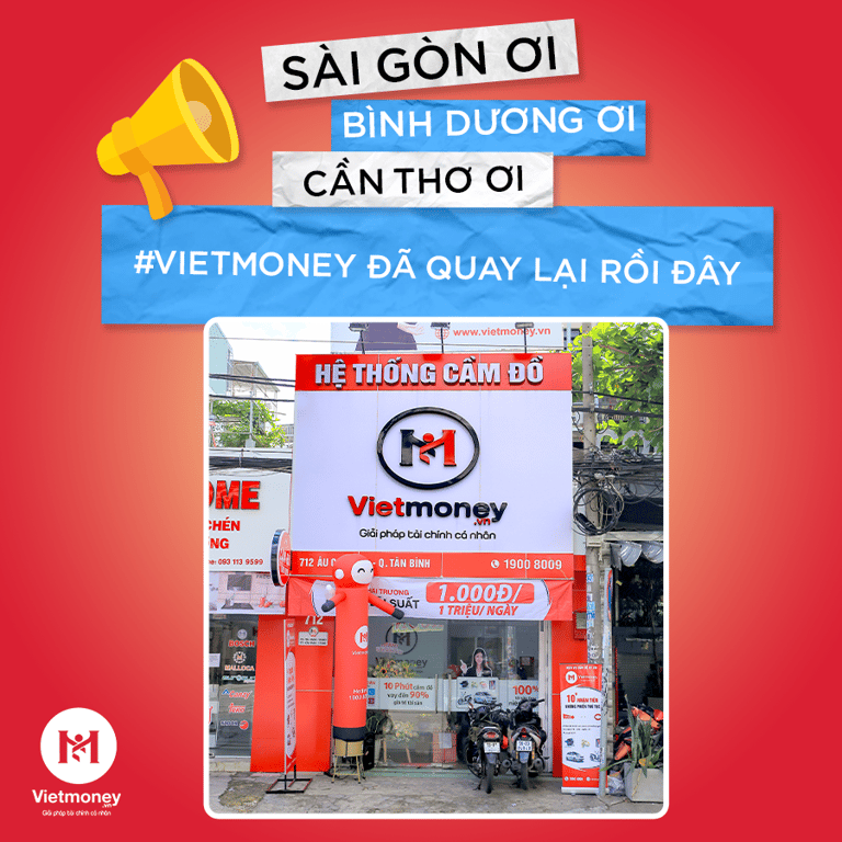 Tất cả cửa hàng của VietMoney đã chính thức hoạt động trở lại từ ngày 01/10/2021 tại Thành phố Hồ Chí Minh, Cần Thơ, Bình Dương. Rất nhiều chương trình ưu đãi: miễn phí phạt, duy trì lãi suất 1%… hiện đang diễn ra. Đến ngay VietMoney để không bỏ lỡ những ưu đãi này nhé!