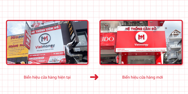 Cụ thể, diện mạo các cửa hàng của VietMoney sẽ được chuyển từ màu đỏ đen sang màu đỏ trắng mang tính biểu tượng cho ngọn cờ của sự nhiệt huyết, sự tiên phong, đánh dấu bước đi mới, mở ra một kỷ nguyên mới – kỷ nguyên của ngành cầm đồ online. Phù hợp với tầm nhìn mới lớn hơn, thử thách hơn và sẽ vinh quang hơn đó là “Trở thành Ngân hàng cho phân khúc dưới chuẩn tại Việt Nam”.
